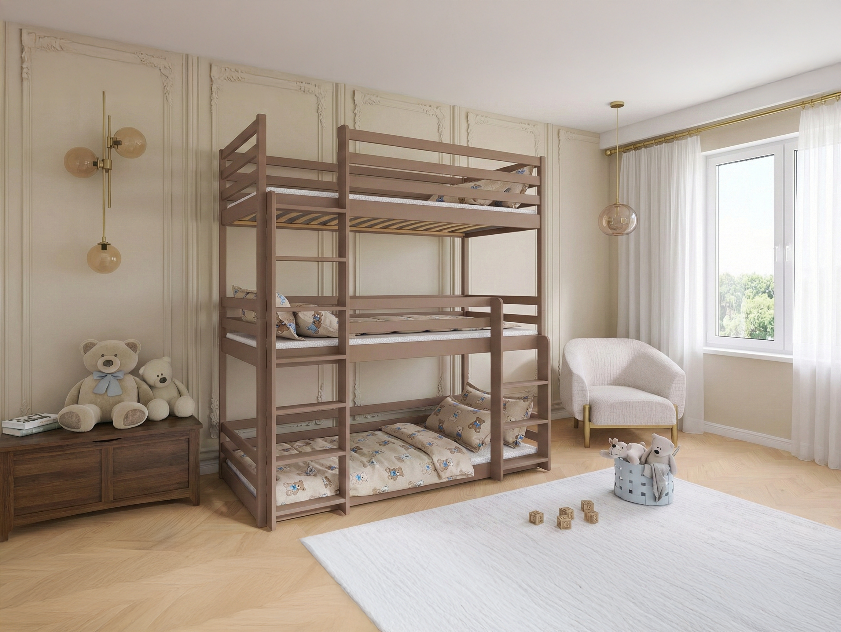 Perfekt gestalteter Raum – wählen Sie ein Etagenbett in der Farbe Milchschokolade TED 80x180