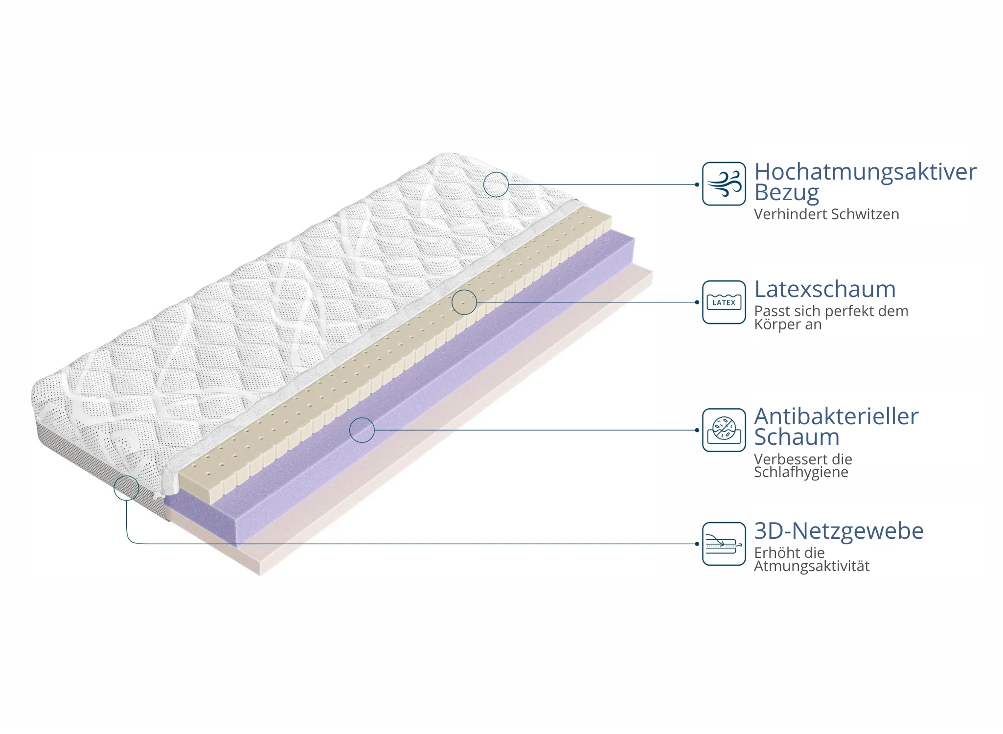 CLEAN 140x200 mittelfest 13 cm Latexmatratze mit antibakteriellem Schaum Lano Möbel