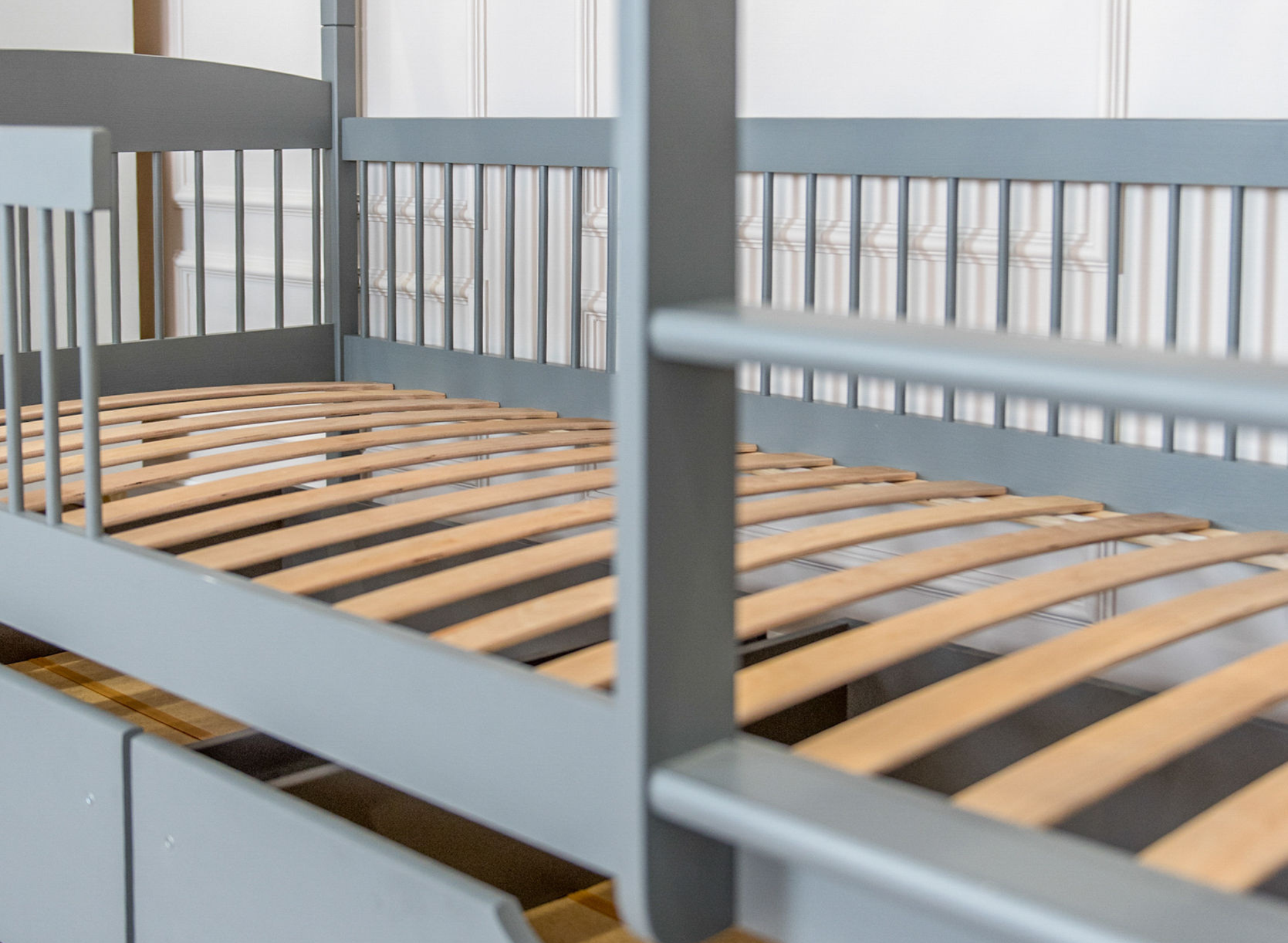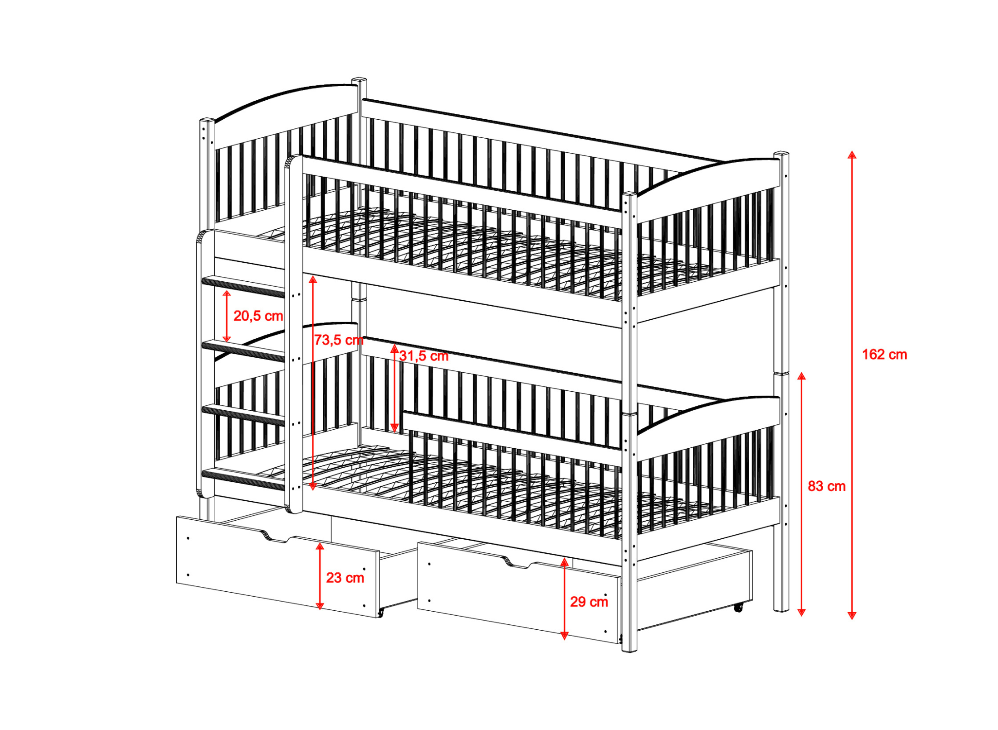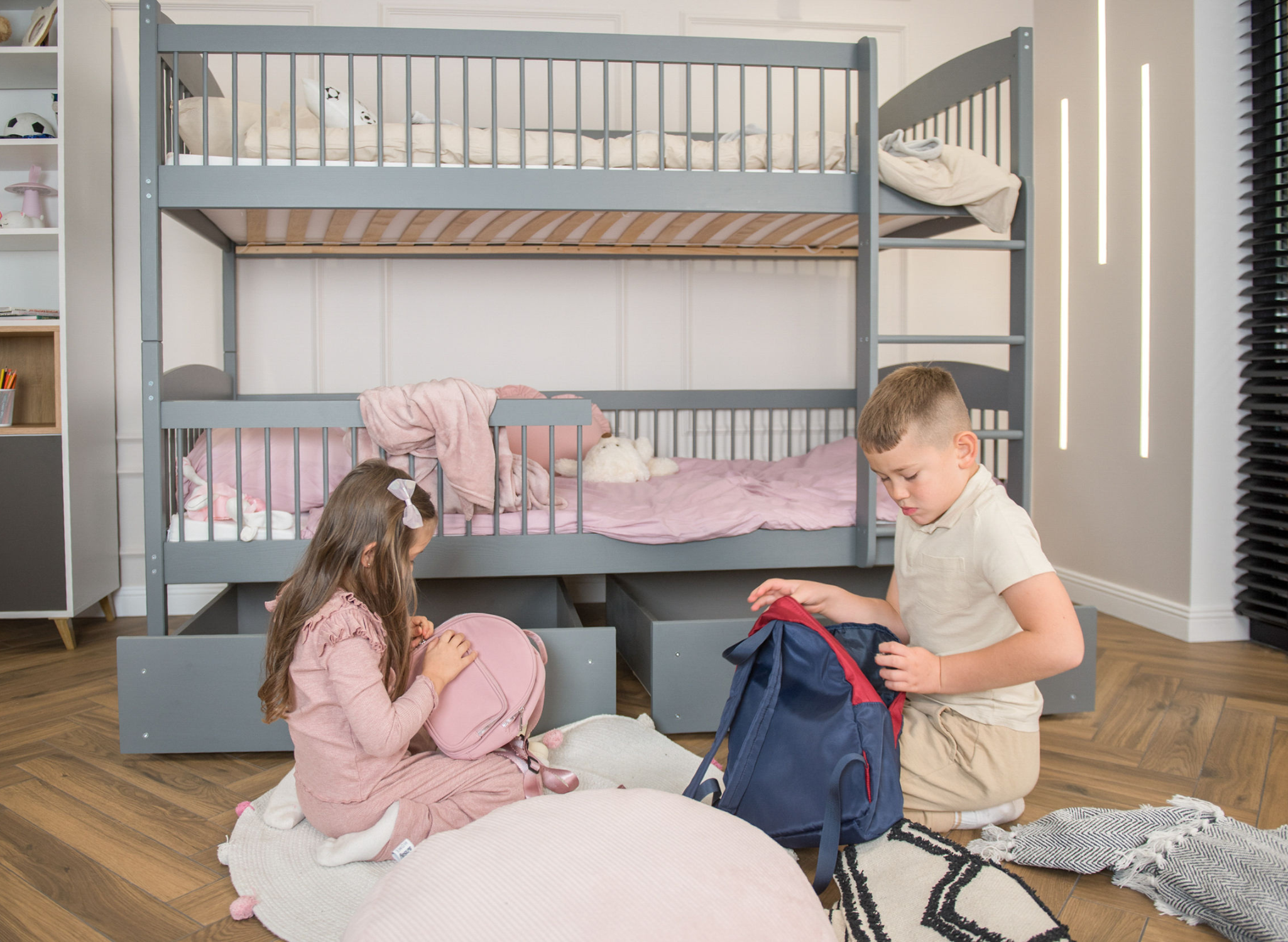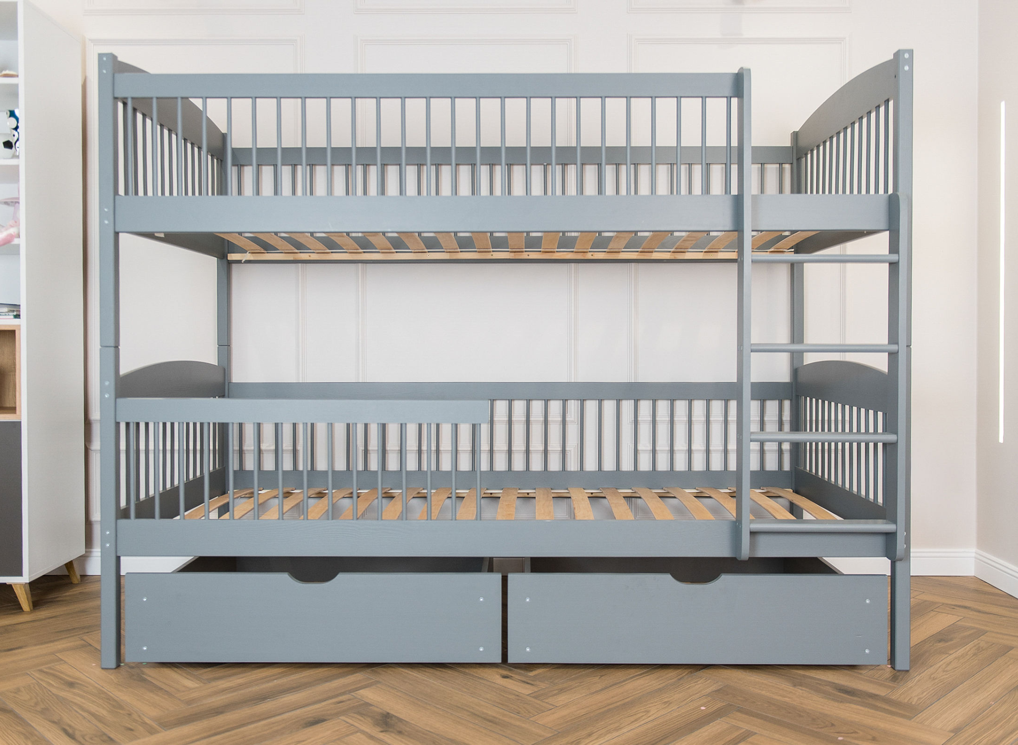 Das multifunktionale Bett für Geschwister von Lano Meble ist ein Must-have für ein gut eingerichtetes Kinderzimmer. Es verfügt über zwei Schlafebenen, sodass jeder Ihrer kleinen Entdecker hier seinen eigenen Platz findet. Zudem garantieren die durchdachten Schutzgeländer mit Sprossenstäben dem Kind Sicherheit während des Schlafs. Das ist jedoch noch nicht alles, was wir mit dem Kinderbett LUNA von LANO Meble geschaffen haben. Sie können dort problemlos Bettwäsche oder die Spielsachen Ihrer geliebten Kleinen verstauen. Schenken Sie Ihren Kindern einen gesunden und ruhigen Schlaf. Statten Sie ihr Schlafzimmer mit dem besten Etagenbett-Modell für Geschwister LUNA aus, wo sie sich ausruhen, ihre Träume erfüllen und ihre geschwisterliche Beziehung vertiefen können.