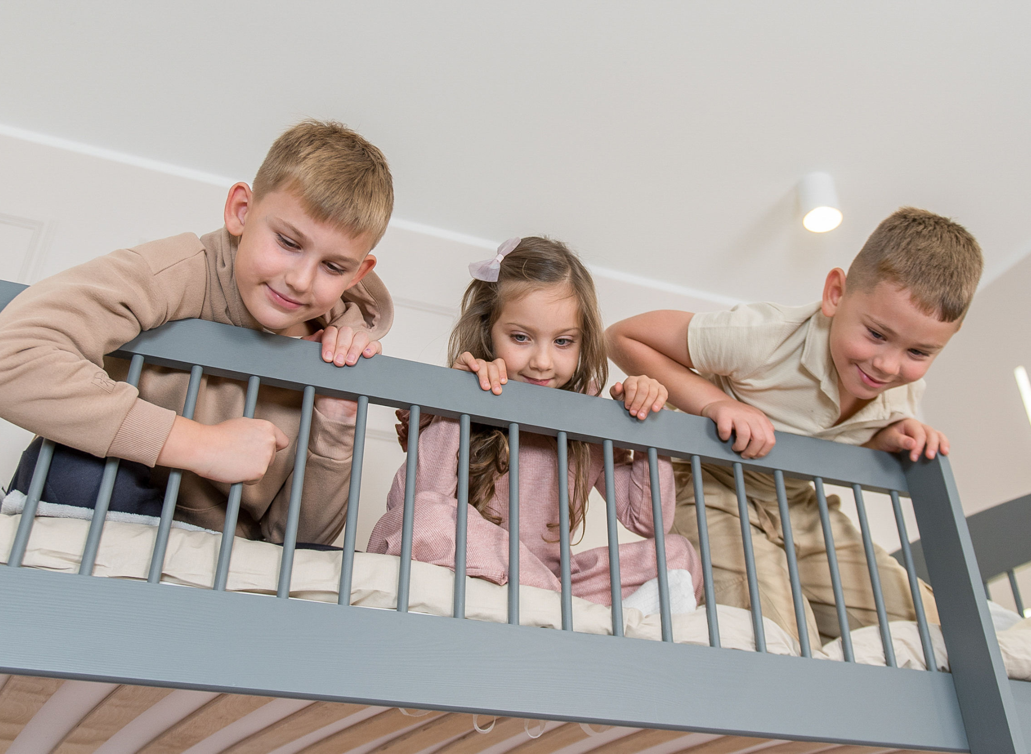 Entwicklung, ruhiger und gesunder Schlaf sowie Sicherheit – sind das für Sie wichtige Faktoren bei der Wahl eines Bettes für Geschwister? Kein Wunder. Jedes Kind verdient nur das Beste. Als fürsorgliche Eltern kümmern Sie sich sicher jeden Tag um sie. Sie möchten, dass das Etagenbett, das Sie für sie wählen, die höchsten Anforderungen erfüllt. Bei der Entwicklung von Kindermöbeln haben wir uns vor allem darauf konzentriert, dass die Materialien, aus denen LANO Etagenbetten gefertigt werden, langlebig und sicher für Ihre Kleinen sind. Deshalb haben wir uns für Kiefernholz entschieden. Es ist sehr robust, selbst bei ausgelassenen Kindern. Zusätzlich wurden die Ecken des Etagenbettes für zwei Geschwister abgerundet, um eventuellen Verletzungen vorzubeugen. Jedes Detail des Geschwisterbettes LUNA ist perfekt ausgearbeitet. Gönnen Sie Ihren Kindern ein zeitloses Möbelstück, das sie beim Ausruhen unterstützt und gleichzeitig ein fantastischer Spielgefährte ist. Das Etagenbett LUNA wartet genau auf Sie.