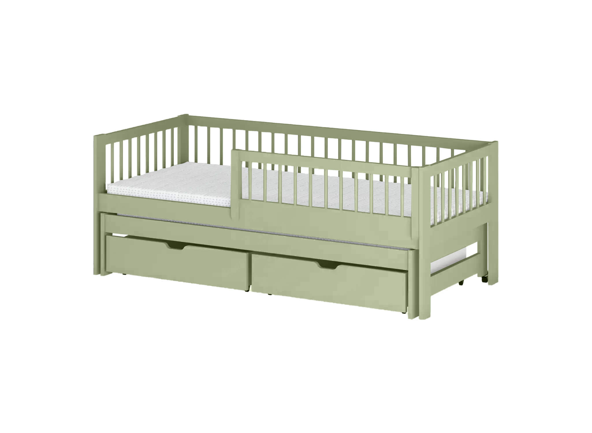 Unterstützen Sie die Entwicklung Ihres Kindes durch guten Schlaf im olivfarbenn SOFTI Kinderbett 90x180