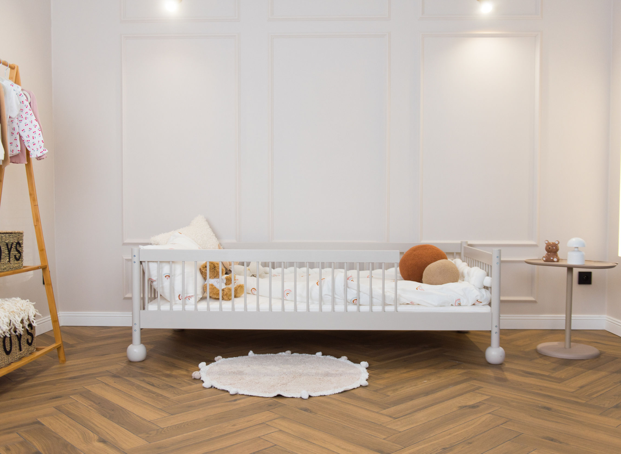 Das Bodenbett fördert die Selbstständigkeit, ist sicher und bietet dem Kind die Möglichkeit zum freien – also besten! – Spiel. Dieses Modell lehrt Unabhängigkeit: Das Kleinkind entscheidet selbst, wann es ins Bett geht und wann es andere Bereiche des Zimmers nutzen möchte. Die einfache, aber durchdachte Konstruktion minimiert das Sturzrisiko, während die minimalistische Form dafür sorgt, dass das niedrige Kinderbett in verschiedene Einrichtungsstile passt. Gleichzeitig ist es außergewöhnlich. Achten Sie auf die runden Füße, die das Bett STAR von anderen Möbeln dieser Art abheben. Das ist noch nicht alles. Wenn Sie möchten, können Sie es mit dekorativen Kugeln versehen – das ist kinderleicht, einfach anschrauben, um ein originelles Bett für Jungen oder Mädchen zu schaffen.