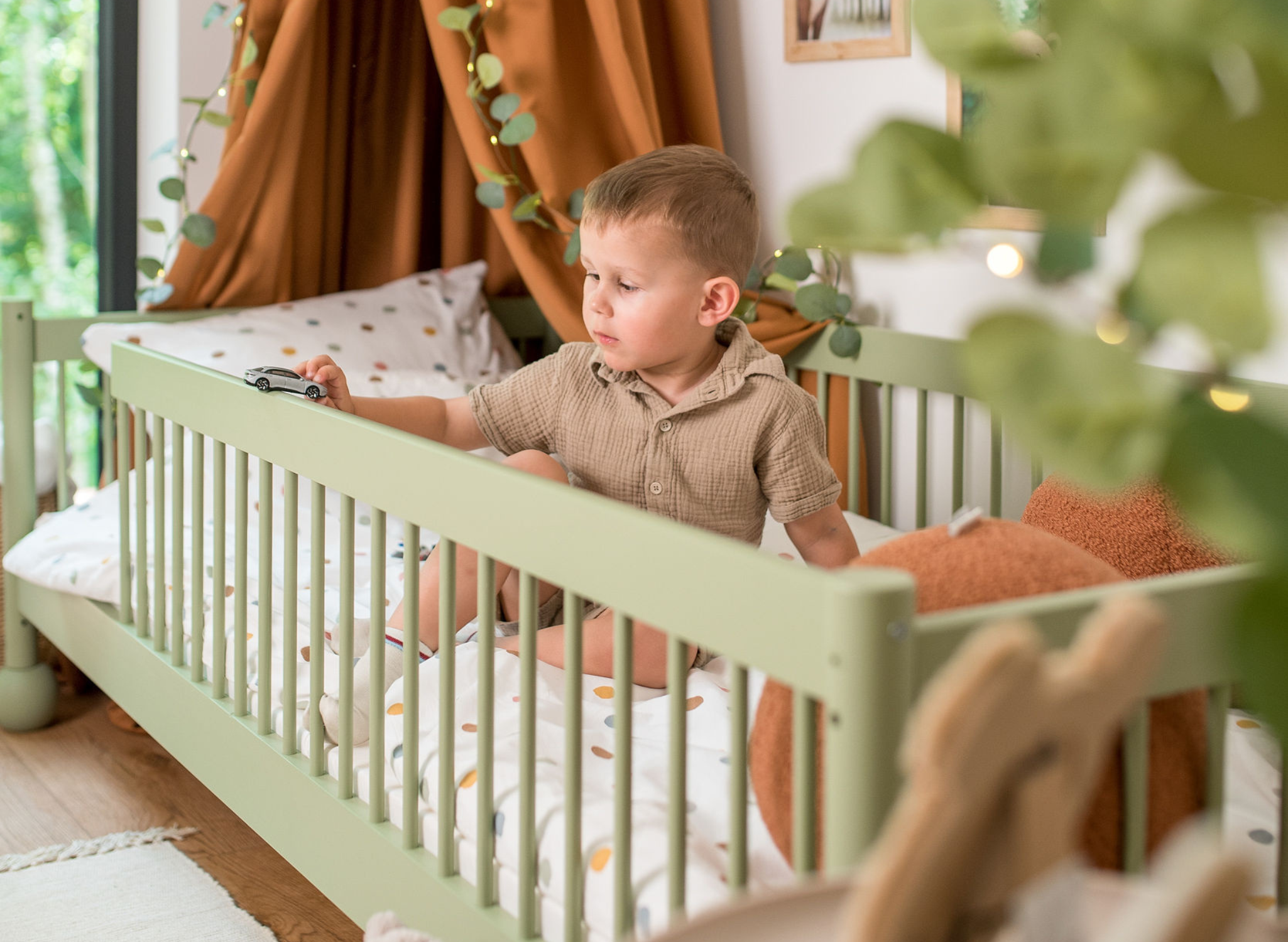 - Die Sicherheit des Kindes – das Bettchen hat keine hohen Gitter, sondern an die Bedürfnisse des Kindes angepasste Kiefernholz-Sprossen. Diese sorgen für einen ruhigen Schlaf, auch wenn sich das Kleinkind nachts oft dreht.