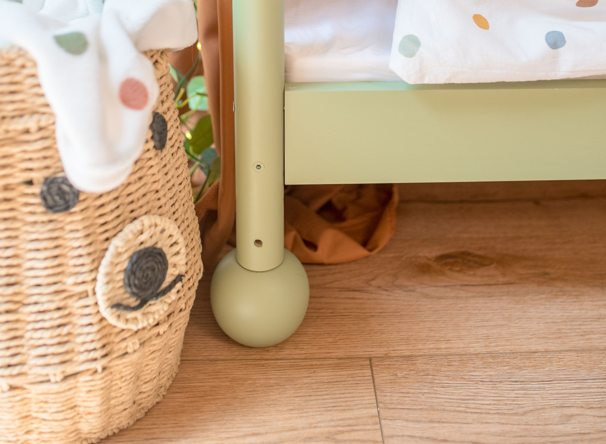 Das Bodenbett fördert die Selbstständigkeit, ist sicher und bietet dem Kind die Möglichkeit zum freien – also besten! – Spiel. Dieses Modell lehrt Unabhängigkeit: Das Kleinkind entscheidet selbst, wann es ins Bett geht und wann es andere Bereiche des Zimmers nutzen möchte. Die einfache, aber durchdachte Konstruktion minimiert das Sturzrisiko, während die minimalistische Form dafür sorgt, dass das niedrige Kinderbett in verschiedene Einrichtungsstile passt. Gleichzeitig ist es außergewöhnlich. Achten Sie auf die runden Füße, die das Bett STAR von anderen Möbeln dieser Art abheben. Das ist noch nicht alles. Wenn Sie möchten, können Sie es mit dekorativen Kugeln versehen – das ist kinderleicht, einfach anschrauben, um ein originelles Bett für Jungen oder Mädchen zu schaffen.