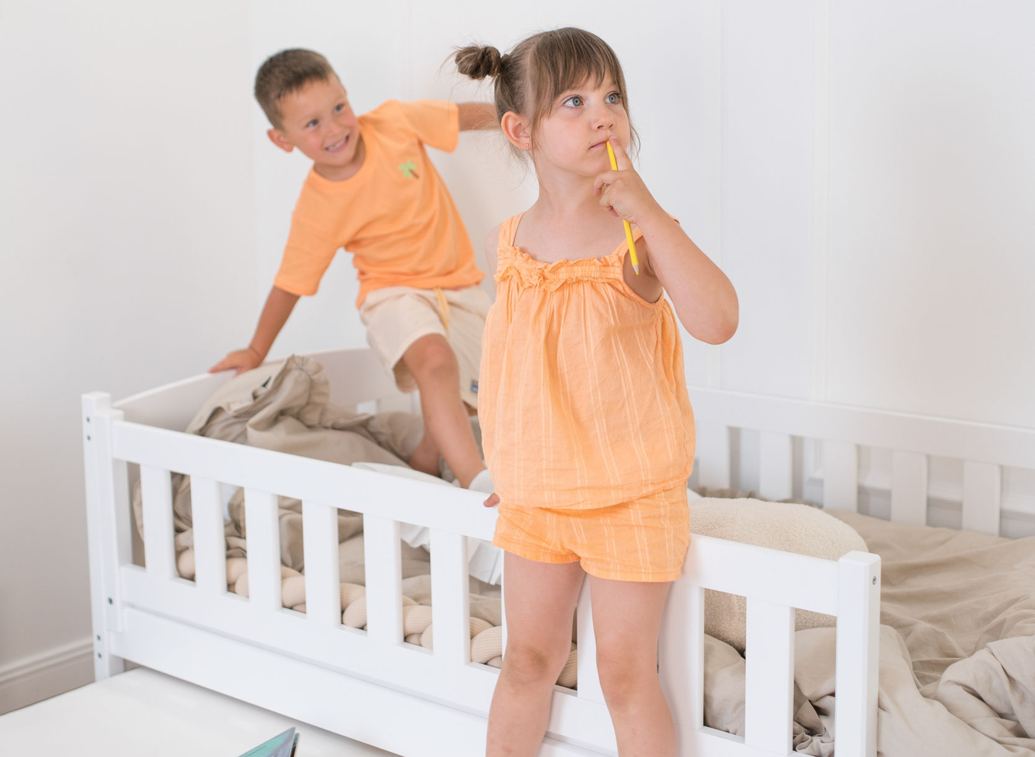 Wenn Ihr Kind gerne Cousins oder Freunde zu Übernachtungen einlädt, wird Ihnen sicherlich der zusätzliche Schlafplatz in seinem Zimmer nützlich sein. Mit dem Kinderbett AMELKA wird das noch mehr Spaß machen! Hier ist alles, was Sie über dieses vielseitige Kinderbett wissen sollten. Wir haben bereits die erste Idee für die Verwendung des doppelten Kinderbetts AMELKA vorgestellt: Bequemes Übernachten der Gäste Ihres Kindes. Diese Lösung ist auch dann eine Überlegung wert, wenn Sie ein Kinderzimmer für zwei Kinder einrichten und der begrenzte Platz das Aufstellen eines zweiten separaten Möbels unmöglich macht. Es reicht aus, auf jeder Plattform eine bequeme Matratze zu verwenden, und alle werden sich bestens ausruhen, und das bei täglichem Gebrauch, nicht nur an Feiertagen.