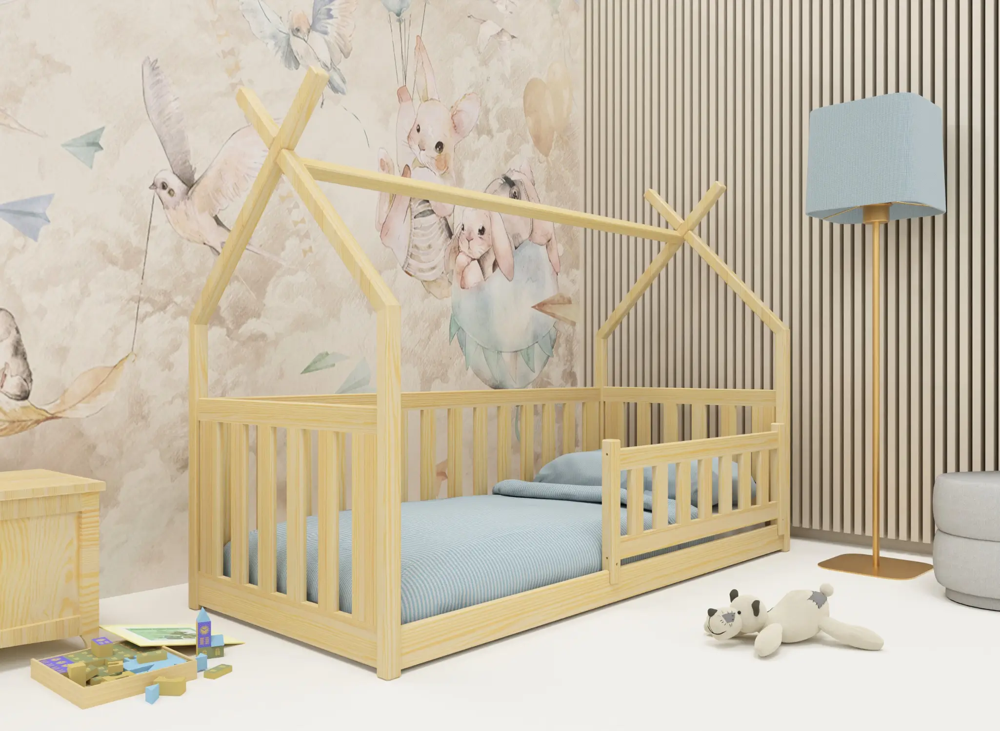 BOGUŚ 80x160 Kiefer Montessori-Bodenbett für Kinder Tipi Lano Möbel