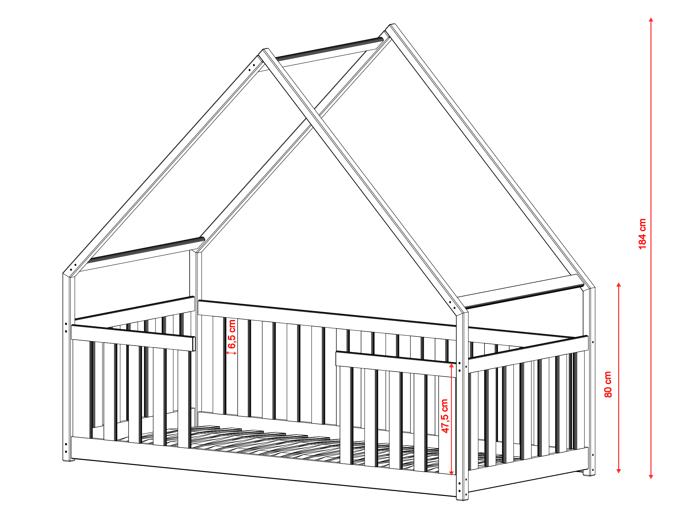 Kinderbettchen Laufstall ist nicht nur ein gewöhnlicher Schlafplatz. Es ist vor allem ein Raum zum Spielen, zur Entwicklung der Vorstellungskraft und Träume. Bei Lano Meble verstehen wir das sehr gut, deshalb haben wir etwas Besonderes für die jüngsten Kinder kreiert - ein niedriges Laufstallbett in Form eines Häuschens. Inspiriert von der kindlichen Unschuld ist unser Babybettchen mit einem Dach in Häuschenform nicht nur ein Möbelstück - es ist ein Tor zu einer Welt endloser Abenteuer und unbeschwerter Freude, das Ihr Kind in eine märchenhafte Welt entführen wird, in der Träume wahr werden. Ein perfektes Kinderbett, das Komfort, Sicherheit und Spaß vereint? Lernen Sie unser einzigartiges Laufstallbett mit einem Dach in Häuschenform kennen. Unser Laufstall BEE ist ein Einzelbettmodell, das speziell für die Kleinsten entwickelt wurde. Die Vorteile eines Laufstallbettes sind die festen Geländer, die die Sicherheit des Kleinkinds gewährleisten. Die Eingangstür in der Mitte des Laufstalls ermöglicht es sogar einem krabbelnden Kind, frei in das Bettchen zu gelangen und es zu verlassen, ohne Angst vor einem Sturz haben zu müssen. Unser Häuschen-Laufstall ist ein Ort, an dem sie sicher schlafen und Spaß haben können. Das Dach in Häuschenform verleiht ihm Charme und ermutigt zu kreativem Spiel, während es gleichzeitig einen gemütlichen und sicheren Rückzugsort für ein Nickerchen bietet. Es ist nicht nur ein Bett - es ist ein magischer Ort, der Ihrem Kind hilft, die Welt zu entdecken.