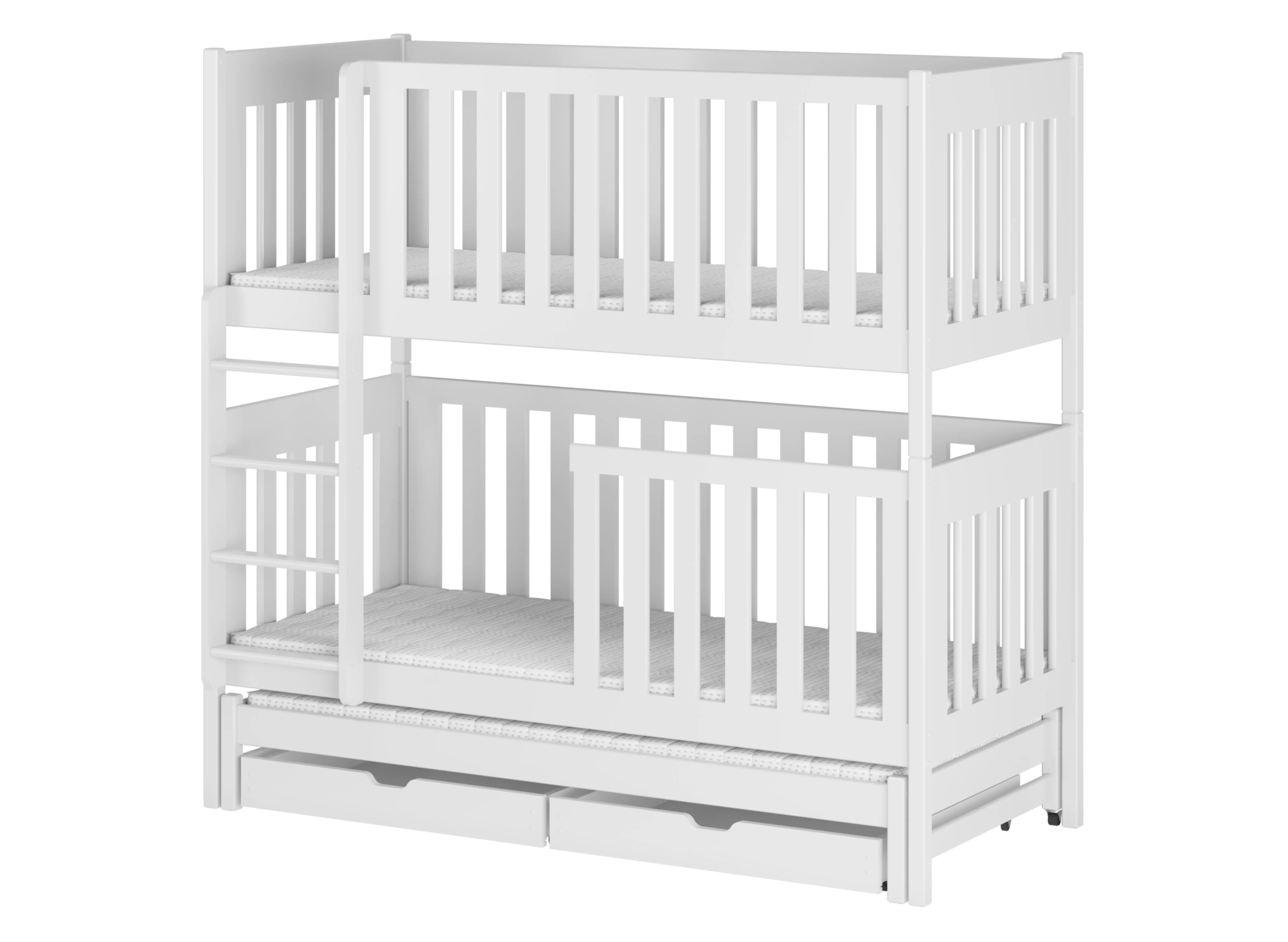 Schlafen mit Leitern für Geschwister – weißes Etagenbett EMILKA