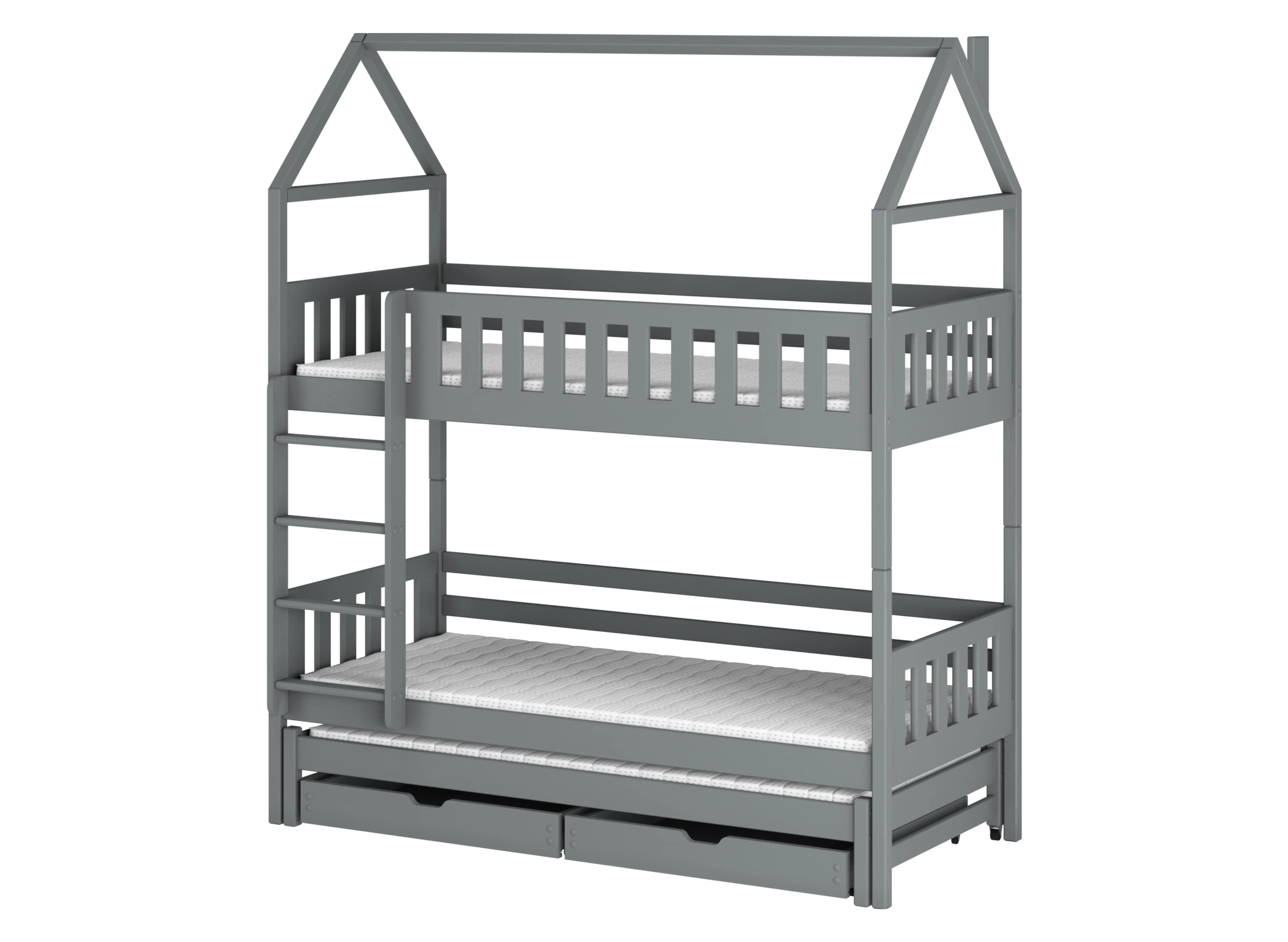 IGA Haus-Etagenbett 90x200, grau – praktisches Geländer, das eine wichtige Aufgabe erfüllt