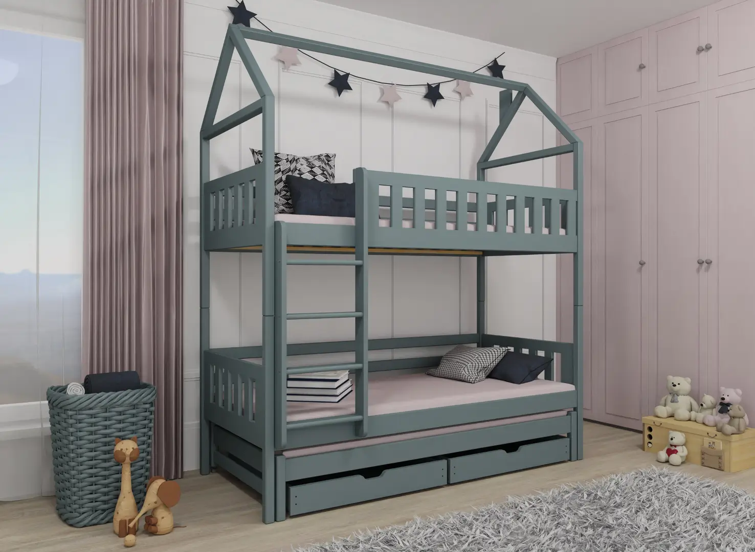 IGA Haus-Etagenbett 90x200 in Grau – ein Stil, der nicht zu übersehen ist