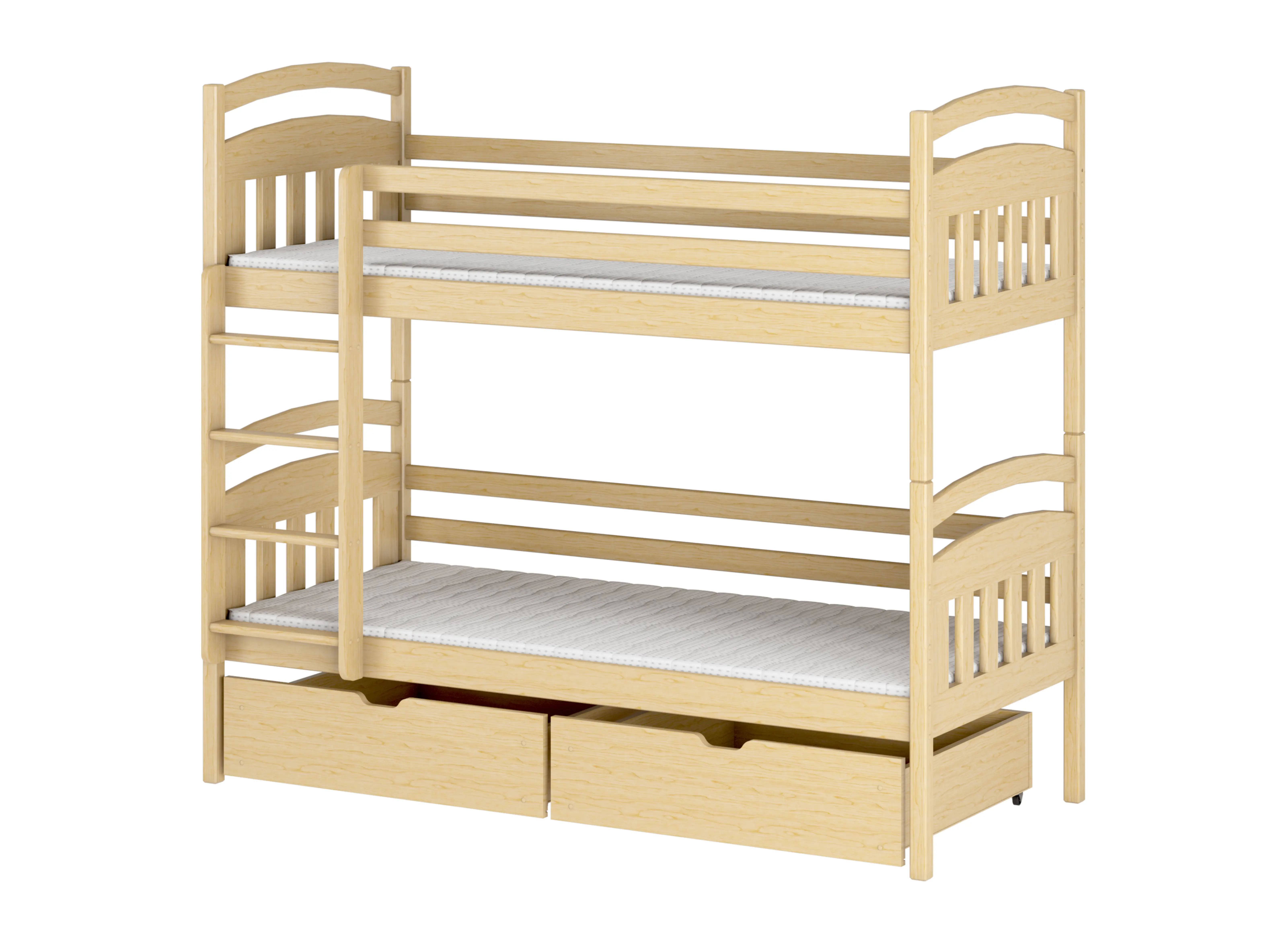 Das Kinderbett GABI ist die ideale Wahl, wenn Sie zwei Kinder haben. Wir haben hier auf ein einzigartiges, magisches Design geachtet. Das Kinderzimmer wird eine ganz neue Atmosphäre erhalten. Das Etagenbett GABI ist wirklich solide gebaut. Wir haben spezielle Kindersicherheitsgeländer und eine universelle Leiter verwendet. Für unser Kinderbett GABI können Sie selbst Schlafmatratzen auswählen - genauso wie einige andere Parameter und Elemente des Bettes. Das Etagenbett GABI ist ein Vorschlag, der selbst den höchsten Anforderungen gerecht wird. Dieses Angebot zeichnet sich in vielerlei Hinsicht aus. Das Etagenbett GABI wurde aus robustem, hochwertigem Kiefernholz gefertigt - das garantiert Langlebigkeit. Holzgeländer und die universelle Leiter gehören zu weiteren wichtigen Vorteilen. GABI ist ein Bett mit Schubladen, in denen Sie beispielsweise Spielzeug, Kissen, Decken oder Bettwäsche aufbewahren können. Es ist auch erwähnenswert, dass wir in diesem Fall Individualisierung ermöglichen. Das Etagenbett GABI kann nach Ihren Wünschen angepasst werden.