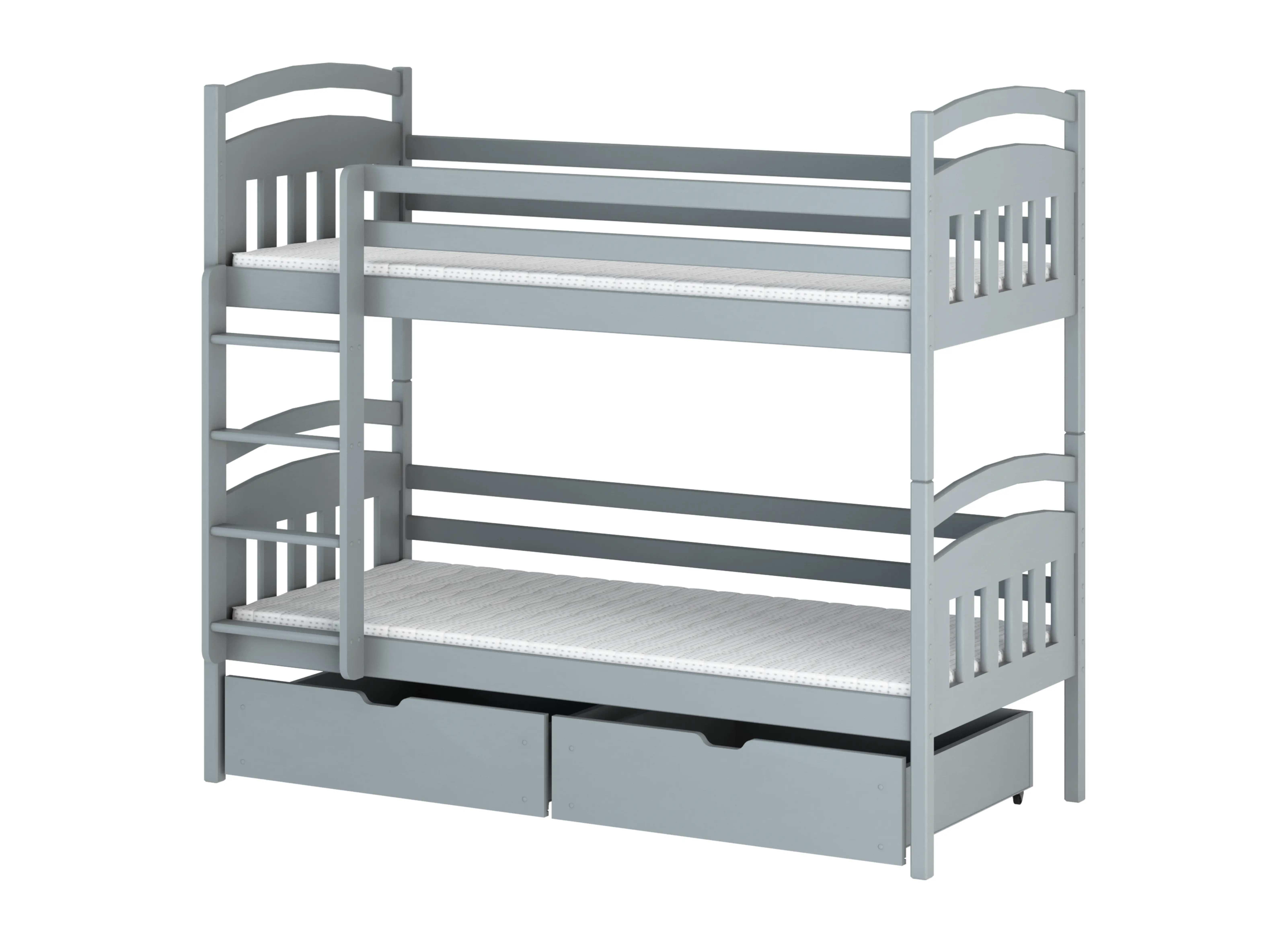 Das Kinderbett GABI ist die ideale Wahl, wenn Sie zwei Kinder haben. Wir haben hier auf ein einzigartiges, magisches Design geachtet. Das Kinderzimmer wird eine ganz neue Atmosphäre erhalten. Das Etagenbett GABI ist wirklich solide gebaut. Wir haben spezielle Kindersicherheitsgeländer und eine universelle Leiter verwendet. Für unser Kinderbett GABI können Sie selbst Schlafmatratzen auswählen - genauso wie einige andere Parameter und Elemente des Bettes. Das Etagenbett GABI ist ein Vorschlag, der selbst den höchsten Anforderungen gerecht wird. Dieses Angebot zeichnet sich in vielerlei Hinsicht aus. Das Etagenbett GABI wurde aus robustem, hochwertigem Kiefernholz gefertigt - das garantiert Langlebigkeit. Holzgeländer und die universelle Leiter gehören zu weiteren wichtigen Vorteilen. GABI ist ein Bett mit Schubladen, in denen Sie beispielsweise Spielzeug, Kissen, Decken oder Bettwäsche aufbewahren können. Es ist auch erwähnenswert, dass wir in diesem Fall Individualisierung ermöglichen. Das Etagenbett GABI kann nach Ihren Wünschen angepasst werden.