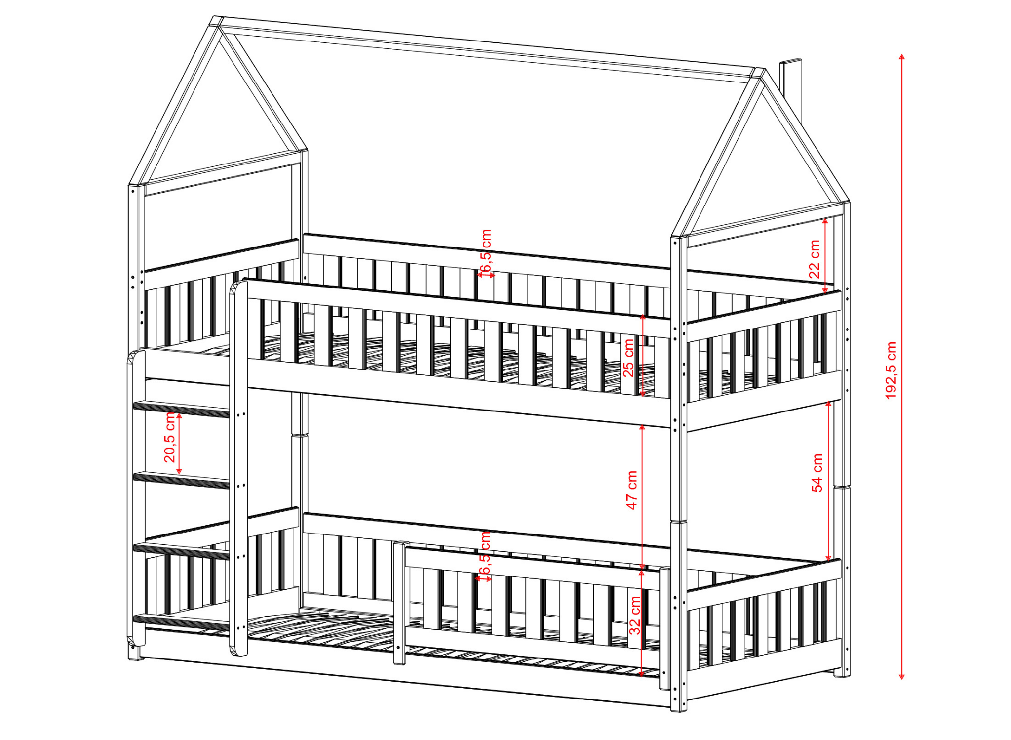 Die unmittelbare Umgebung Ihres Kindes sollte sicher sein, sein Wachstum fördern und ihm ermöglichen, die Welt frei zu erkunden. Das Etagenbett im Häuschen-Stil POLA erfüllt all diese Anforderungen. Es zeichnet sich durch seine auffällige Häuschenform aus, verfügt über angemessene Sicherheitsvorkehrungen, ist aus naturbelassenem Kiefernholz gefertigt und mit zertifiziertem Lack geschützt. Das Etagenbett im Häuschen-Stil POLA ist für Geschwister gedacht, von denen jedes Kind seinen eigenen Schlafplatz haben möchte. Eine unserer Prioritäten bei Lano Meble ist die Sicherheit des Kindes. Das Etagenbett im Häuschen-Stil POLA eignet sich ideal als erstes Bett direkt nach einem üblichen Gitterbett für Babys. Das untere Gestell und die Schlafmatratze befinden sich sehr niedrig und haben direkten Bodenkontakt, was dem Kleinkind das Einsteigen erleichtert und es gleichzeitig vor den Folgen eines Sturzes schützt. Ältere Kinder, selbst die aktiveren, finden ihren sicheren Raum oben, wo das Kinderbett im Häuschen-Stil POLA mit einem holzernen Geländer gesichert ist.