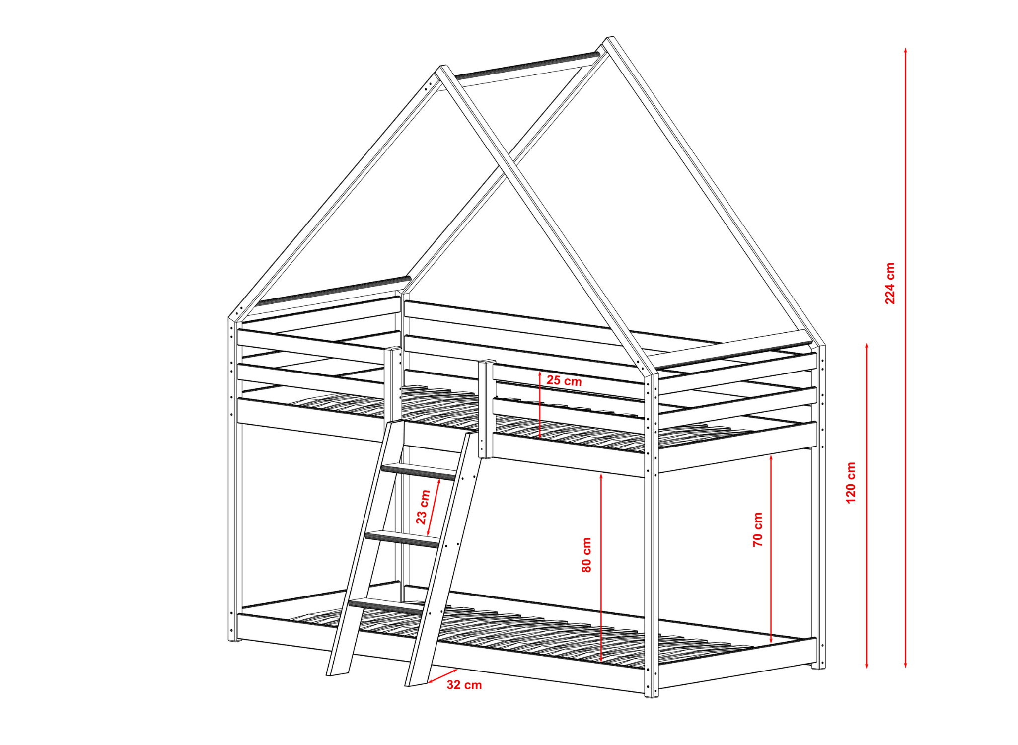Bei Lano Meble können Träume von außergewöhnlichen Abenteuern in den entferntesten Ländern Wirklichkeit werden. Unser Etagenbett Haus SWEET ist eine magische Zeitmaschine, die Ihre Kinder in ein Land der Wunder entführt. Stellen Sie sich ein Bett vor, das wie ein Raumschiff für kleine Astronauten oder eine Burg für mutige Ritter und Prinzessinnen ist. Das obere Stockwerk des Bettes ist ein Sternenobservatorium, bewacht von soliden Barrieren, die eine Schutzmauer gegen die Monster unter dem Bett bilden. Und das untere Schlafdeck? Es ist eine geheime Höhle oder eine Bühne für kleine Künstler, wo jeder Tag eine neue Geschichte erzählt. Bei Lano Meble gestalten wir jedes Detail unserer Kinderbetten mit Liebe und Sorgfalt, um Ihren Kindern Sicherheit und Komfort zu bieten. Das Etagenbett SWEET ist ein Raum, in dem Kinder ihre Fantasie entfalten und ihre eigenen, einzigartigen Welten aufbauen können. Wir bieten Ihnen nicht nur ein Möbelstück, sondern das Versprechen unvergesslicher Momente und ein Lächeln auf den Gesichtern Ihrer Kinder. Unsere Betten sind mit höchster Sorgfalt gefertigt, um viele Jahre zu halten. Ihr zeitloses Design macht sie passend für jedes Interieur. Wählen Sie das Hausbett SWEET und schenken Sie Ihren Kindern einen einzigartigen Ort für Entwicklung und Erholung.