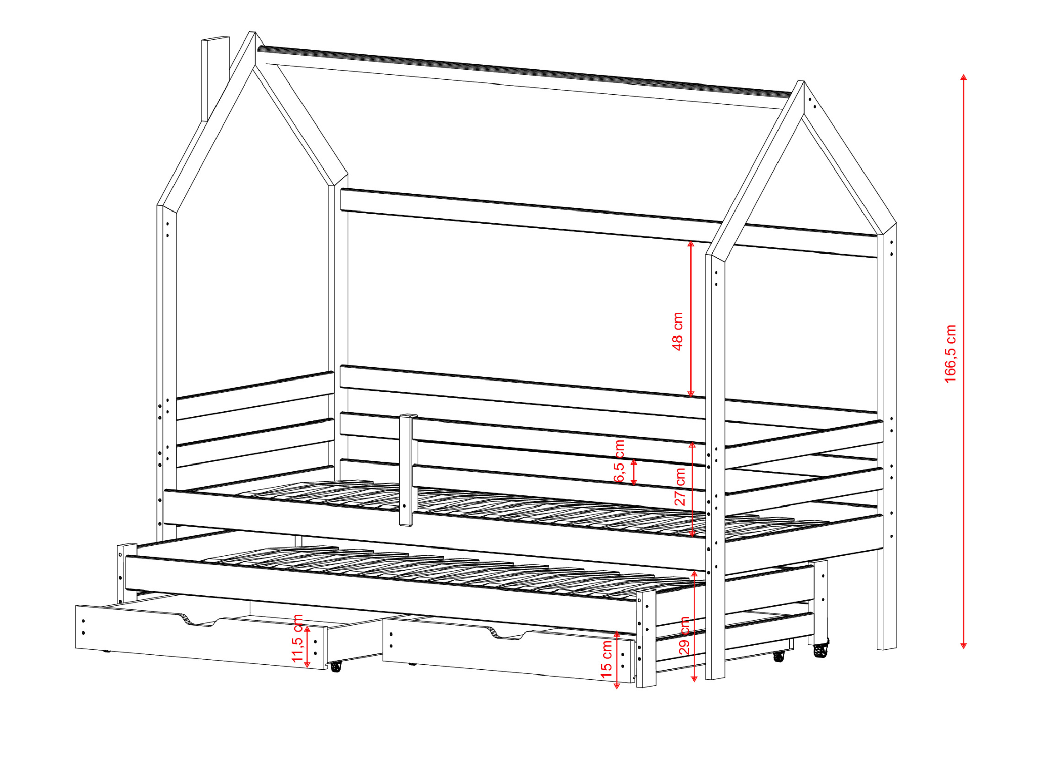 In unserem DANEK-Hausbett haben wir mehrere wichtige Eigenschaften vereint. Dieses Möbelstück ist sicher, zeitlos und ermöglicht Ihrem Kind vor allem einen ruhigen Schlaf die ganze Nacht über. So erfüllen wir die Bedürfnisse von Eltern und Kindern gleichzeitig. Zögern Sie nicht bei der Wahl der Möbel für das Kinderzimmer und entscheiden Sie sich noch heute für das DANEK-Hausbett von Lano Meble.